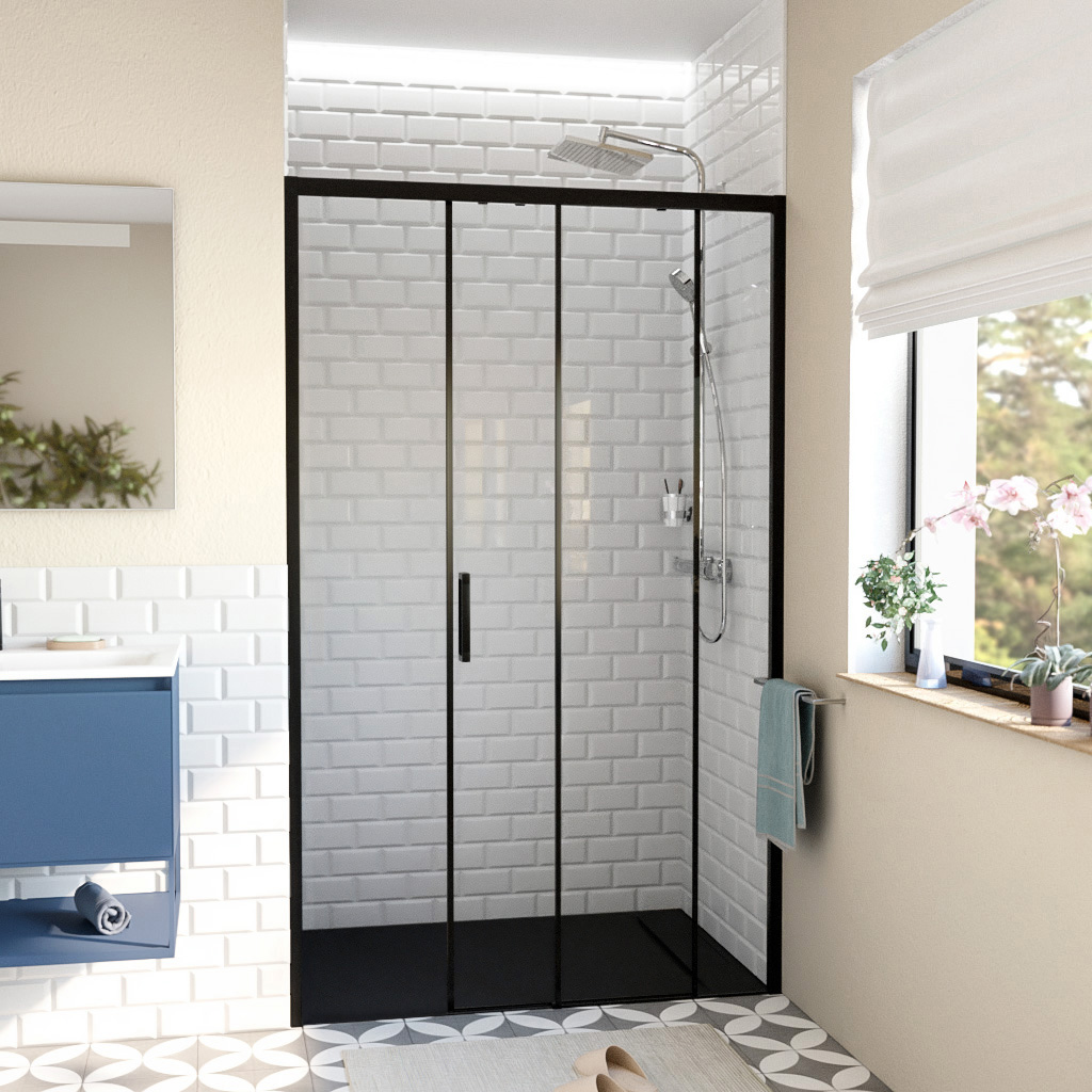 Les profilés en noir mat ajoutent une note sophistiquée et contemporaine à votre salle de bain. Ce choix de couleur tendance apporte un contraste subtil qui se marie parfaitement avec le verre transparent, créant une esthétique minimaliste adaptée à tous types de décors modernes.