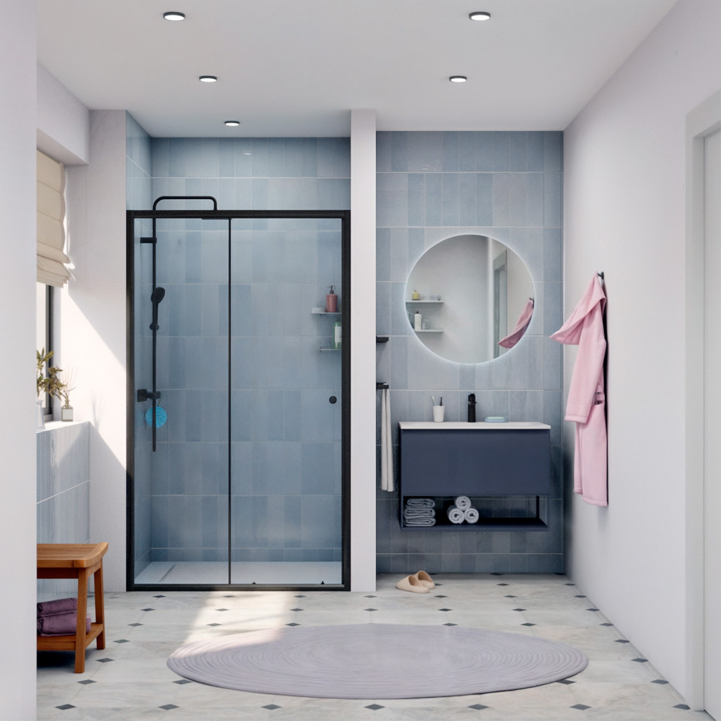 Caractéristiques de la porte de douche SAT Project 130x185cm coulissante anticalcaire avec profilés noir mat (SATPROMUD120CT):