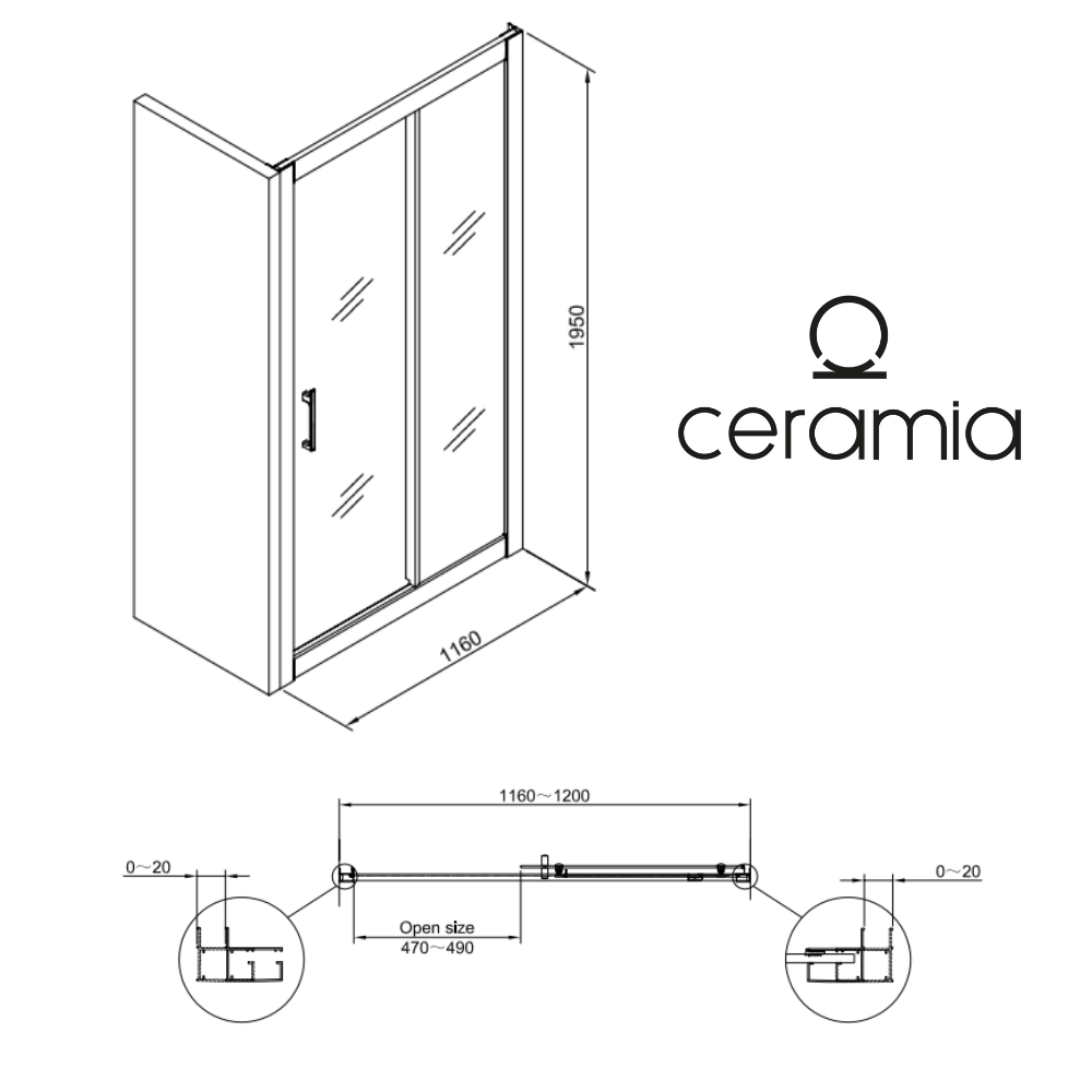 Ceramia PURA Porte de douche 120x195cm coulissante anticalcaire avec profilés Chrome brillant (CERAHP120C)