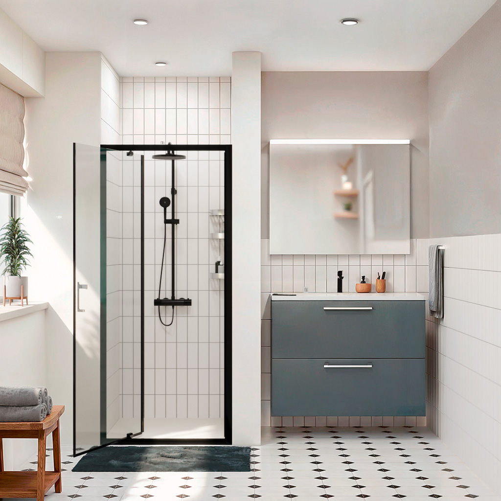 Ceramia Zenith Porte de douche 80x195cm pivotante anticalcaire avec profilés Noir mat (CERAHZ80B)