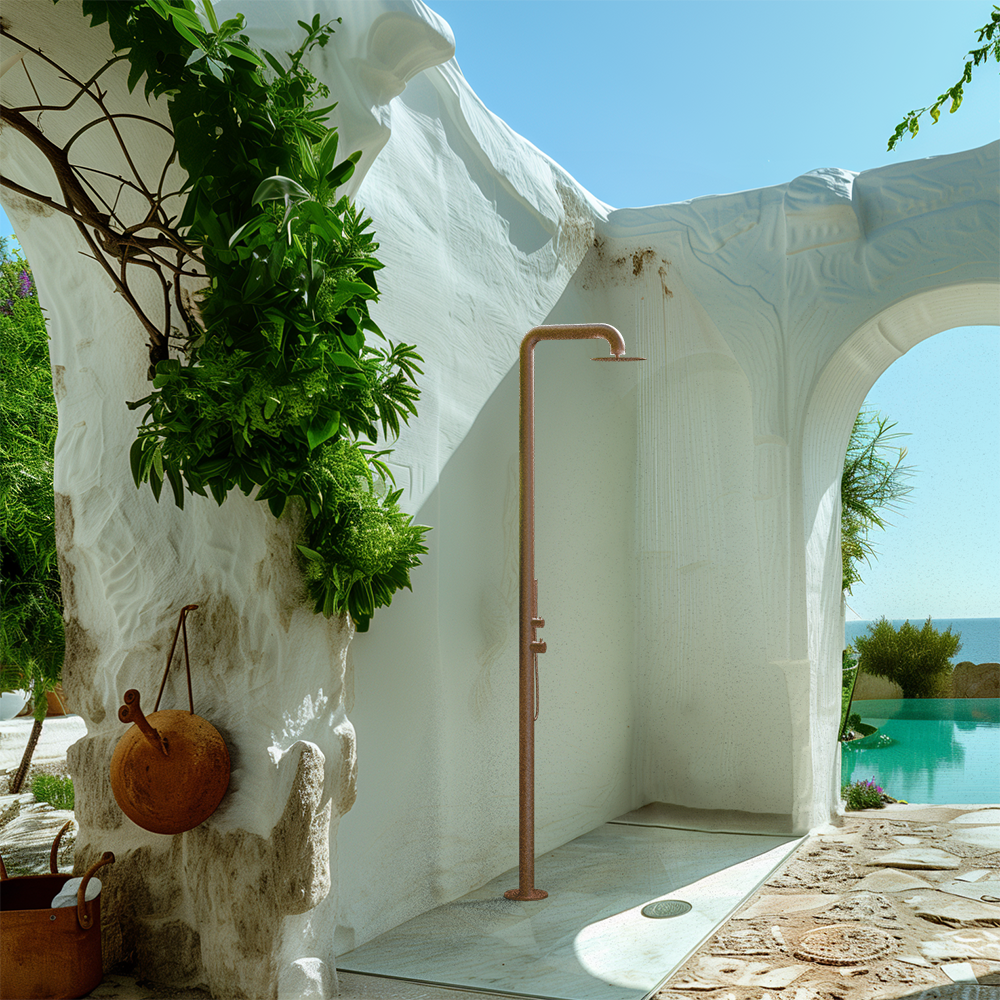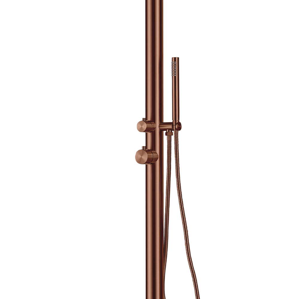 Naturel Douche extérieure en acier , eau chaude & froide, grande tête de douche, douchette à main, couleur cuivrée (NATUREL-3HR)
