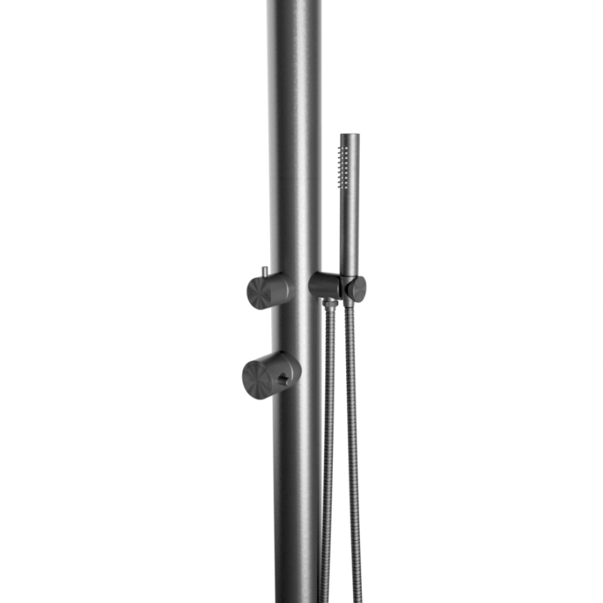 Caractéristiques de la douche extérieure de jardin et piscine, acier inoxydable 316, eau chaude et froide, douchette à main, gun metal (NATUREL-LHGM)