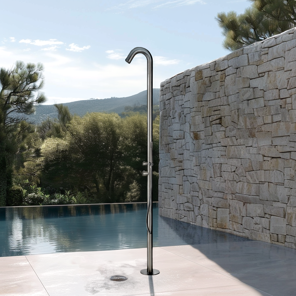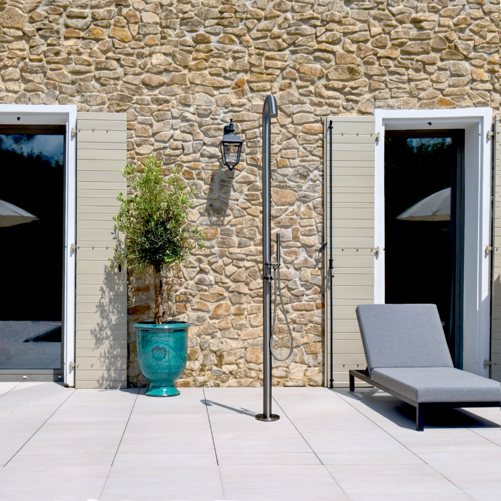 Naturel Douche extérieure de jardin et piscine en inox 316, eau chaude et froide, douchette à main, gun metal (NATUREL-LHGM)