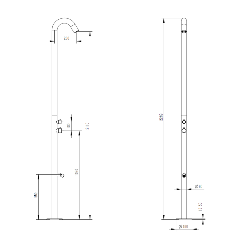 Caractéristiques de la douche extérieure de jardin et piscine, acier inoxydable 316, eau chaude et froide, douchette pieds, acier brossé (Naturel-IF)