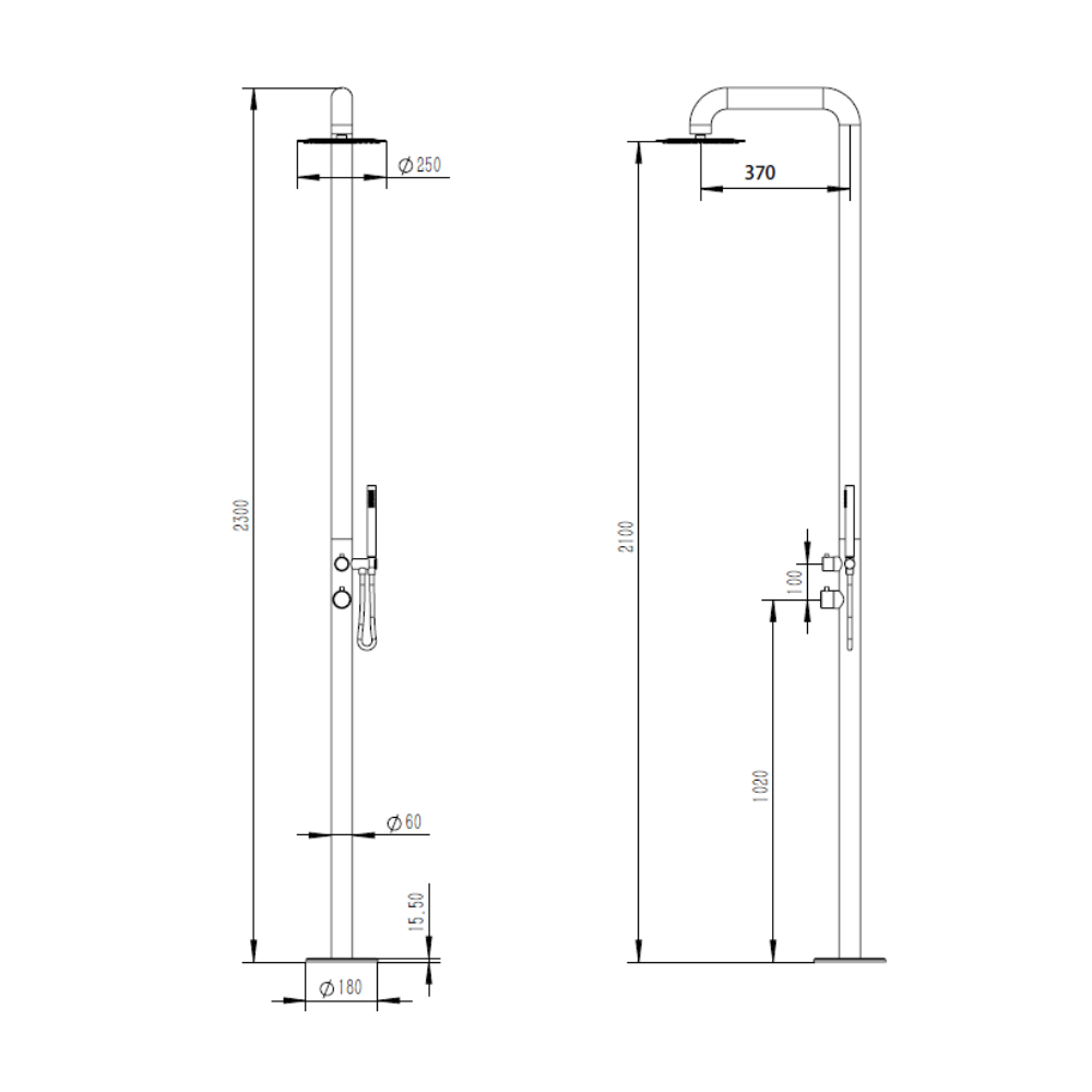 • Hauteur totale de la douche : 2.30 mètres