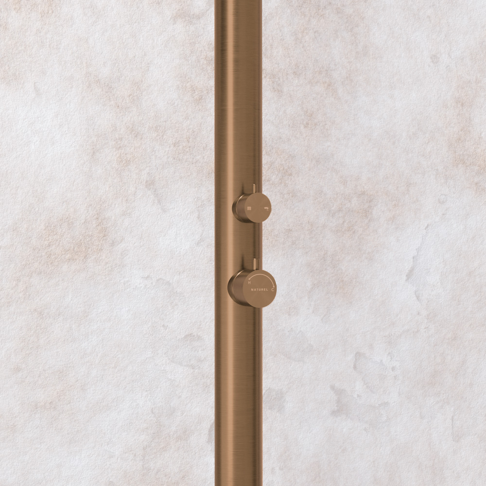Naturel Douche extérieure de jardin et piscine, en inox 316, eau chaude et froide, douchette pieds, couleur cuivre (NATUREL-LFR)
