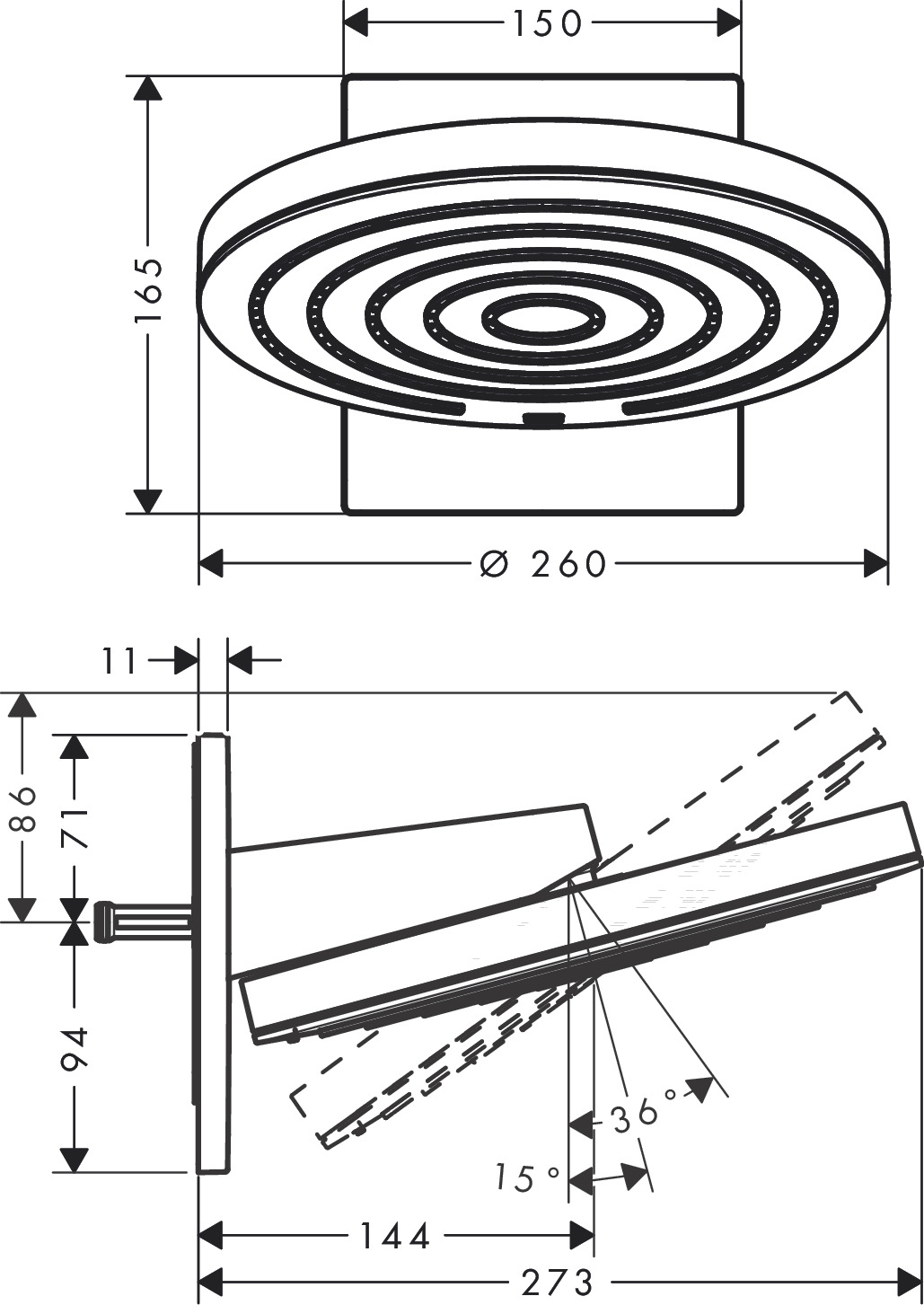 - Diamètre douche de tête (mm):260