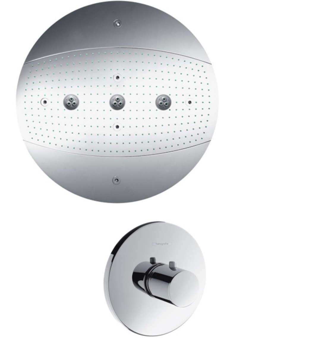 Hansgrohe Raindance Rainmaker Douche de tête 3 jets Ø 600 mm + Mitigeur thermostatique de douche, Chrome (28403000)