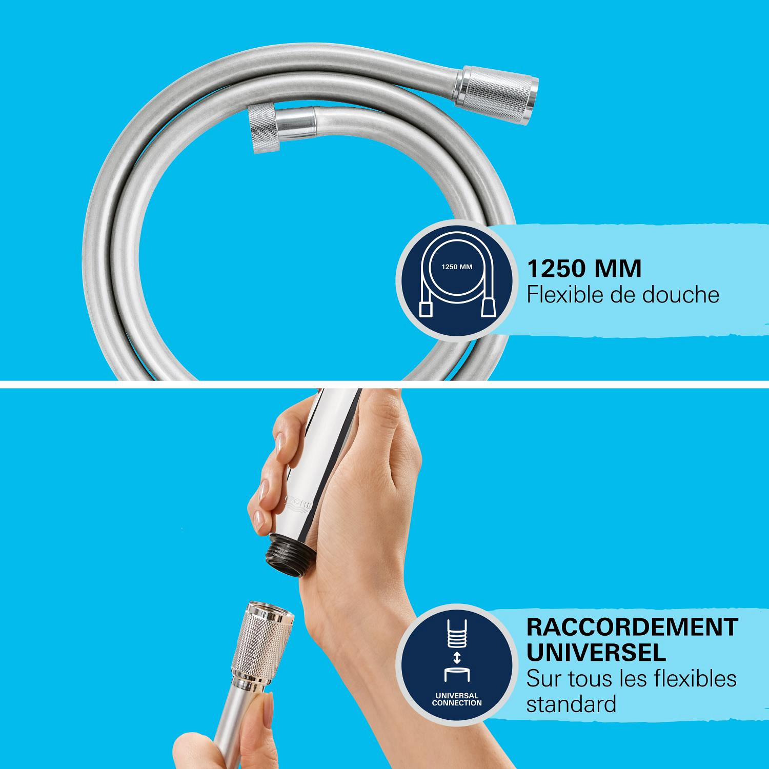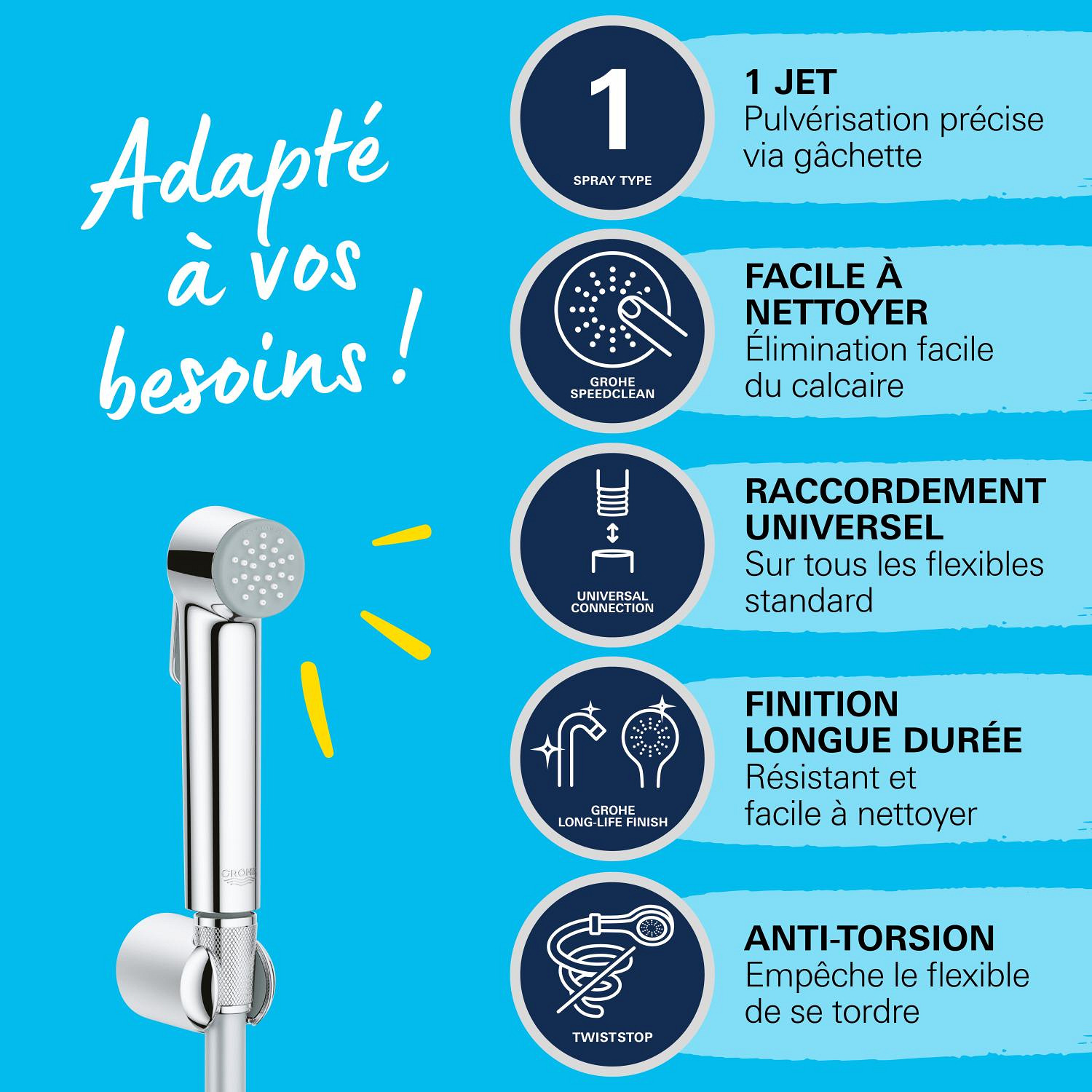 Caractéristiques de l’ensemble de Douche 1 jet avec support mural, Chrome Grohe Vitalio Trigger Spray 30 (26175001) :