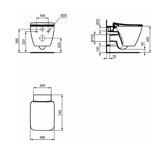 • Cuvette de WC suspendue en porcelaine sanitaire vitrifiée