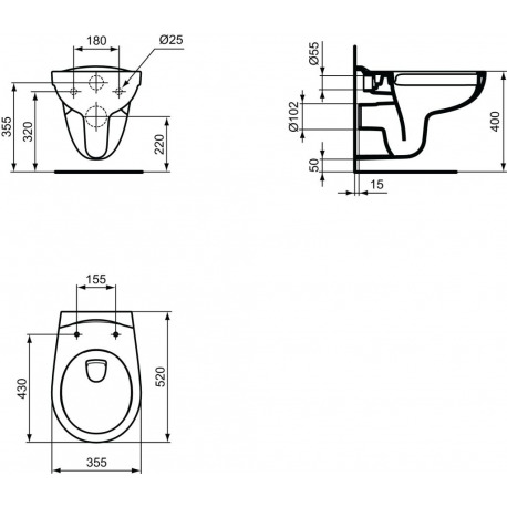 Porcher / Ideal Standard Pack WC suspendu sans bride + abattant Eurovit (PorcherRimless)
