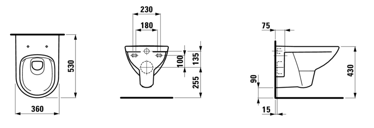 Caractéristiques du pack WC suspendu sans bride, à chasse directe, avec niches, abattant slim frein de chute Laufen Pro: