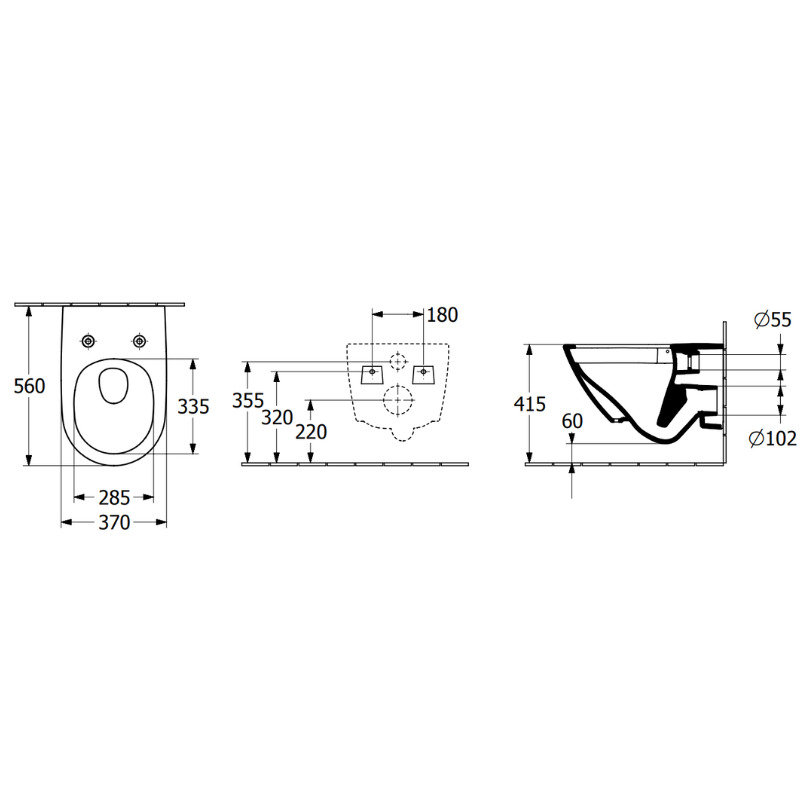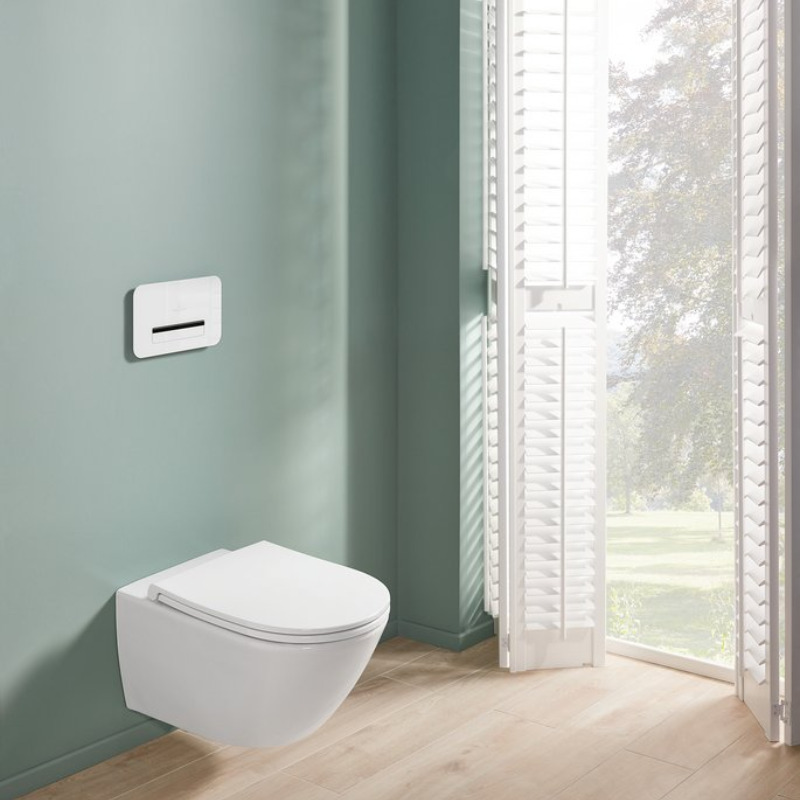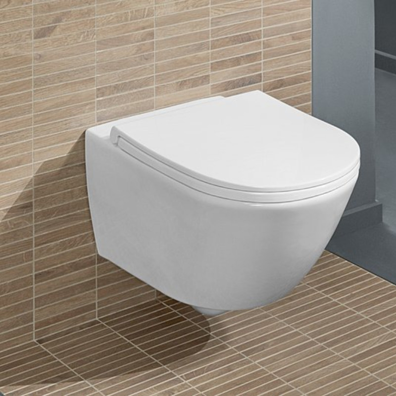 Caractéristiques du WC suspendu sans bride à fond creux, avec DirectFlush + Abattant amovible avec frein de chute, Blanc, Villeroy & Boch Universo Combipack (4670T901) :