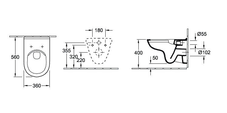 Caractéristiques de la cuvette à fond creux sans bride O.novo Villeroy & Boch, 360 mm x 560 mm + Abattant softclose, blanc