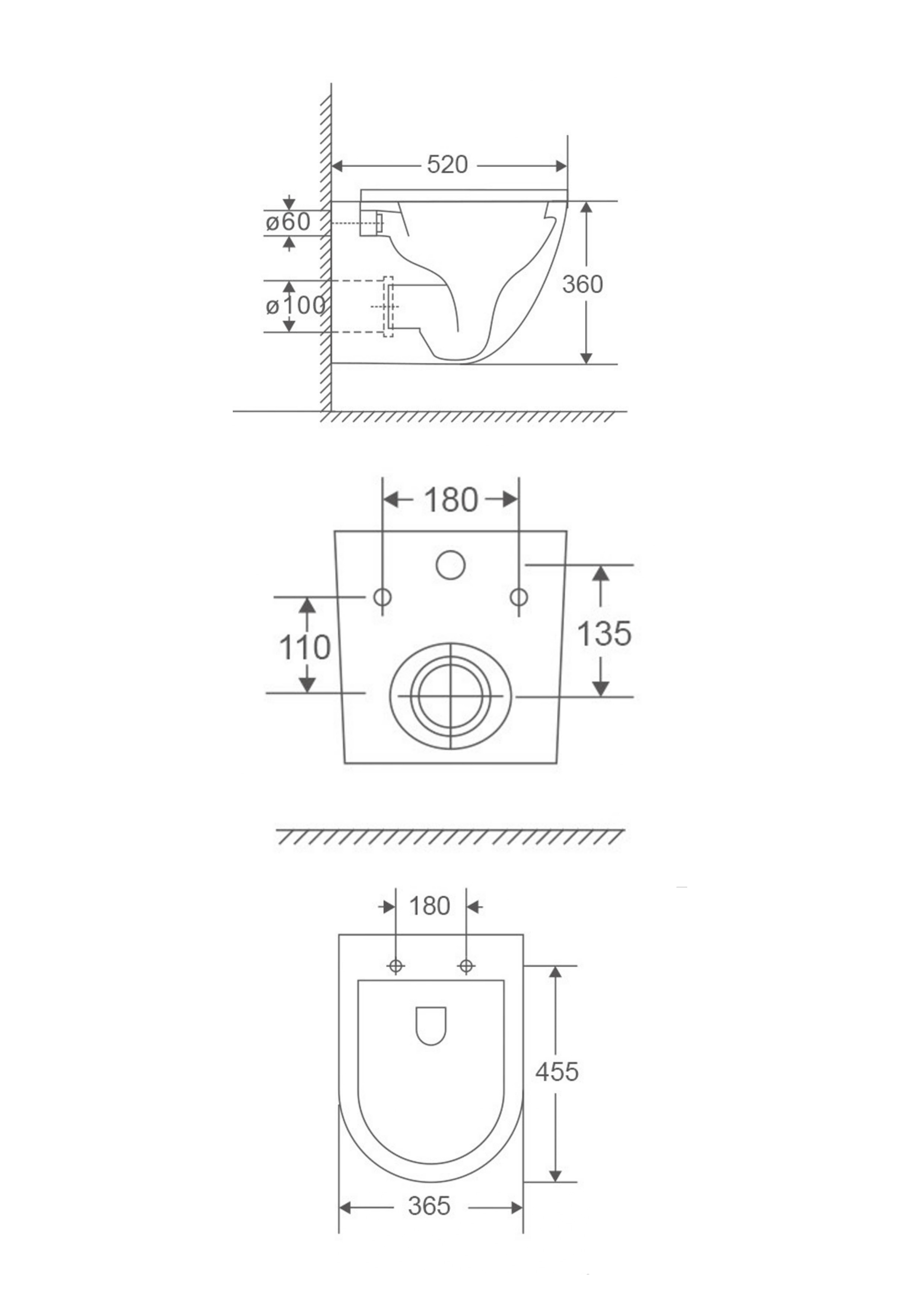 Caractéristiques du WC suspendu sans bride Tornado Quiet et fixations invisibles, abattant frein de chute (SAT67010RTORP) :