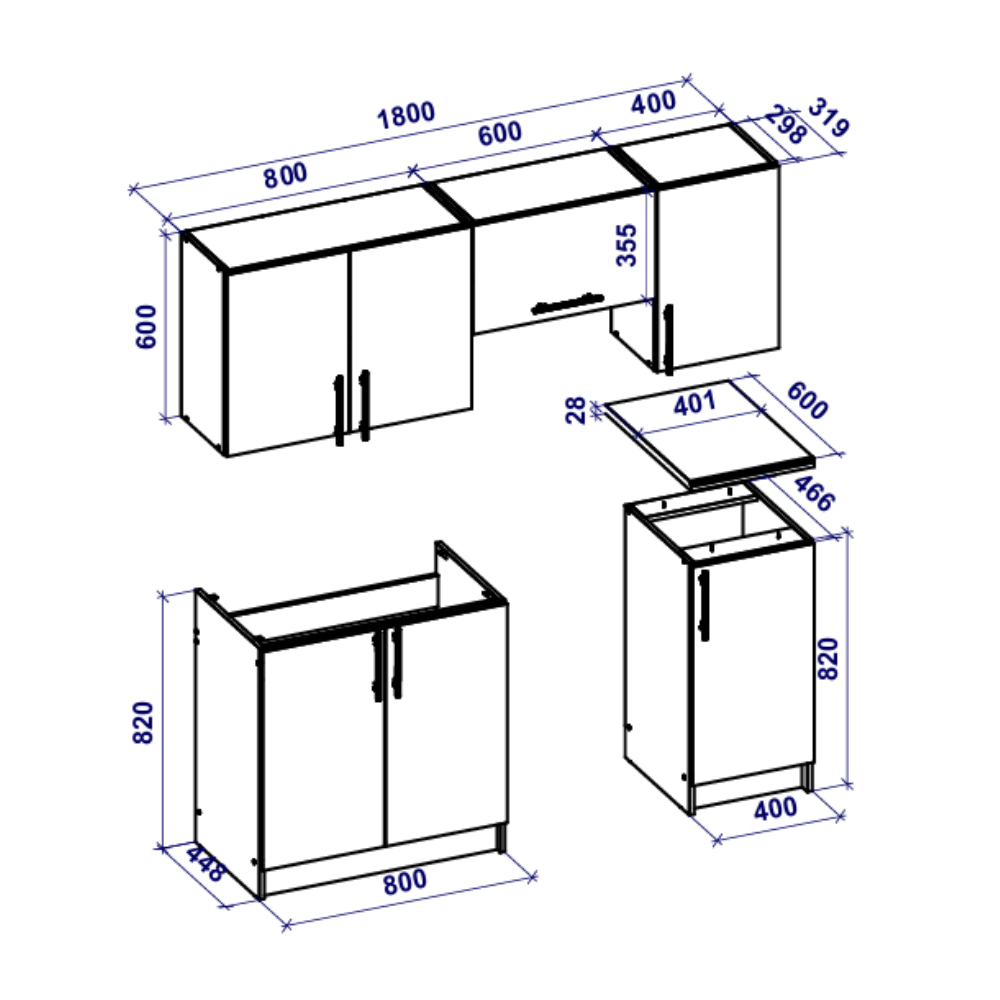 Caractéristiques de la Oak 1,8 m, ensemble de meubles de cuisine à assembler, couleur chêne (KSETOAK)