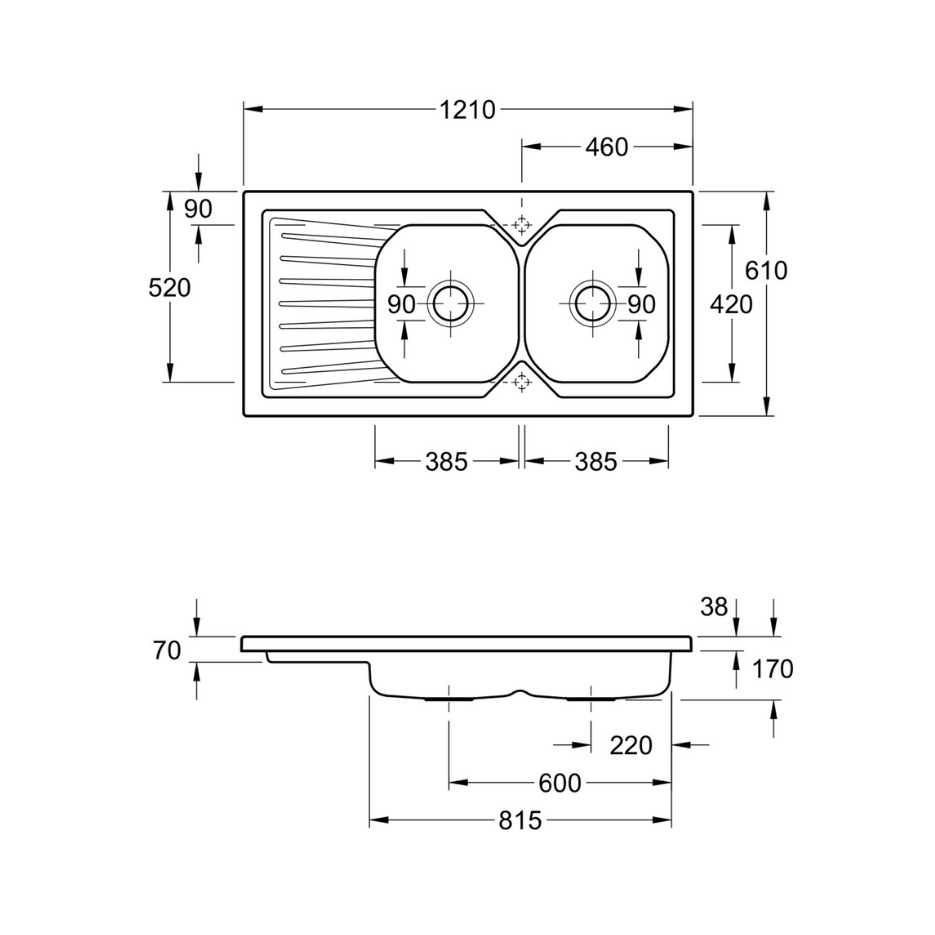 Villeroy & Boch Windsor Évier à poser 121x61cm, 2 cuves avec égouttoir réversible (33900101)