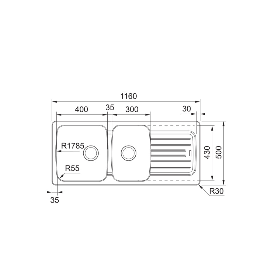 Franke Aveta AVD 621 Evier 116x50cm avec double cuve et égouttoir réversible, Fradura, Gris (AVD621SE)