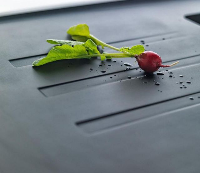 Attention : la robinetterie est positionnée sur la surface égouttoir inclinée et présente une légère inclinaison