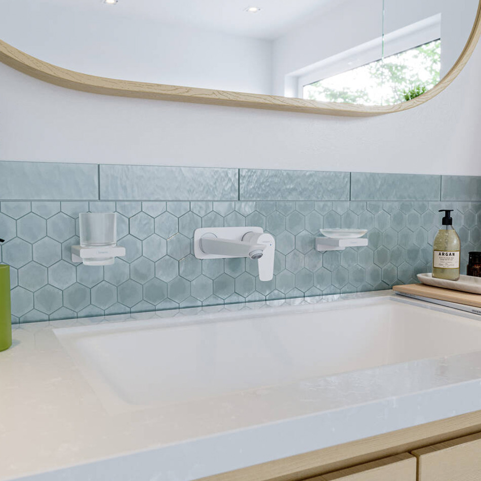 Hansgrohe Talis E Mitigeur de lavabo encastré mural blanc mat, bec 225mm, bonde à écoulement libre (71734700)