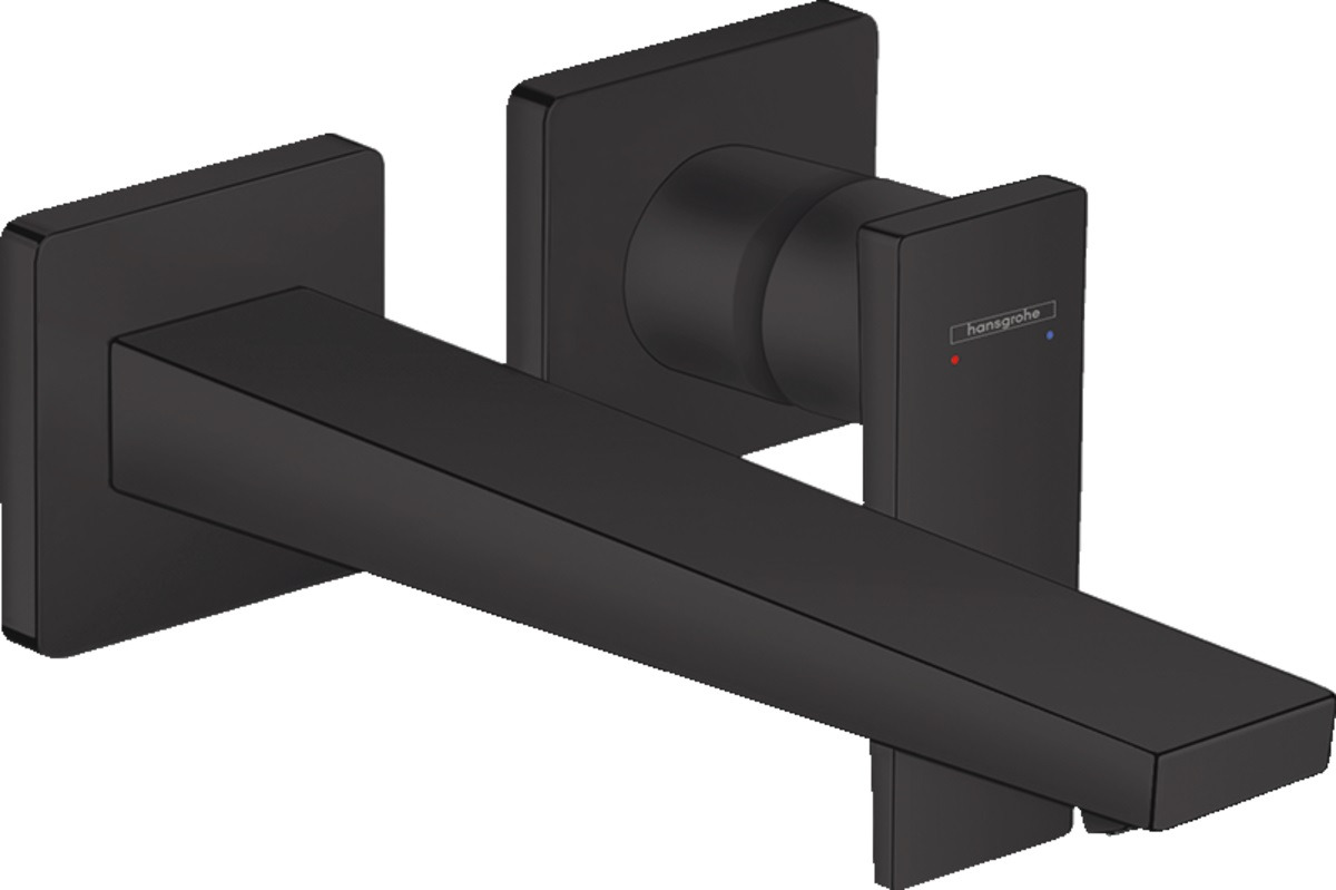 Caractéristiques du mitigeur de lavabo encastré mural, bec 225mm, poignée manette, bonde à écoulement libre, Noir mat Hansgrohe Metropol (32526670) :
