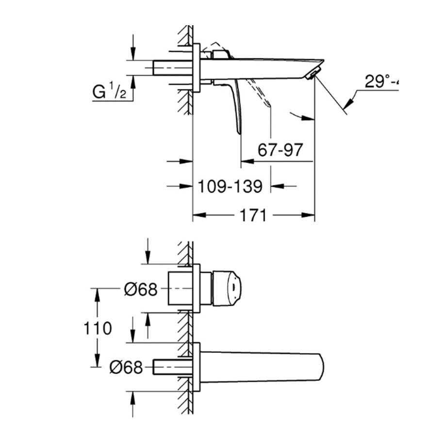 Grohe EUROSMART Mitigeur Monocommande de lavabo, Fixation murale, 2 trous, Chrome(29337003)