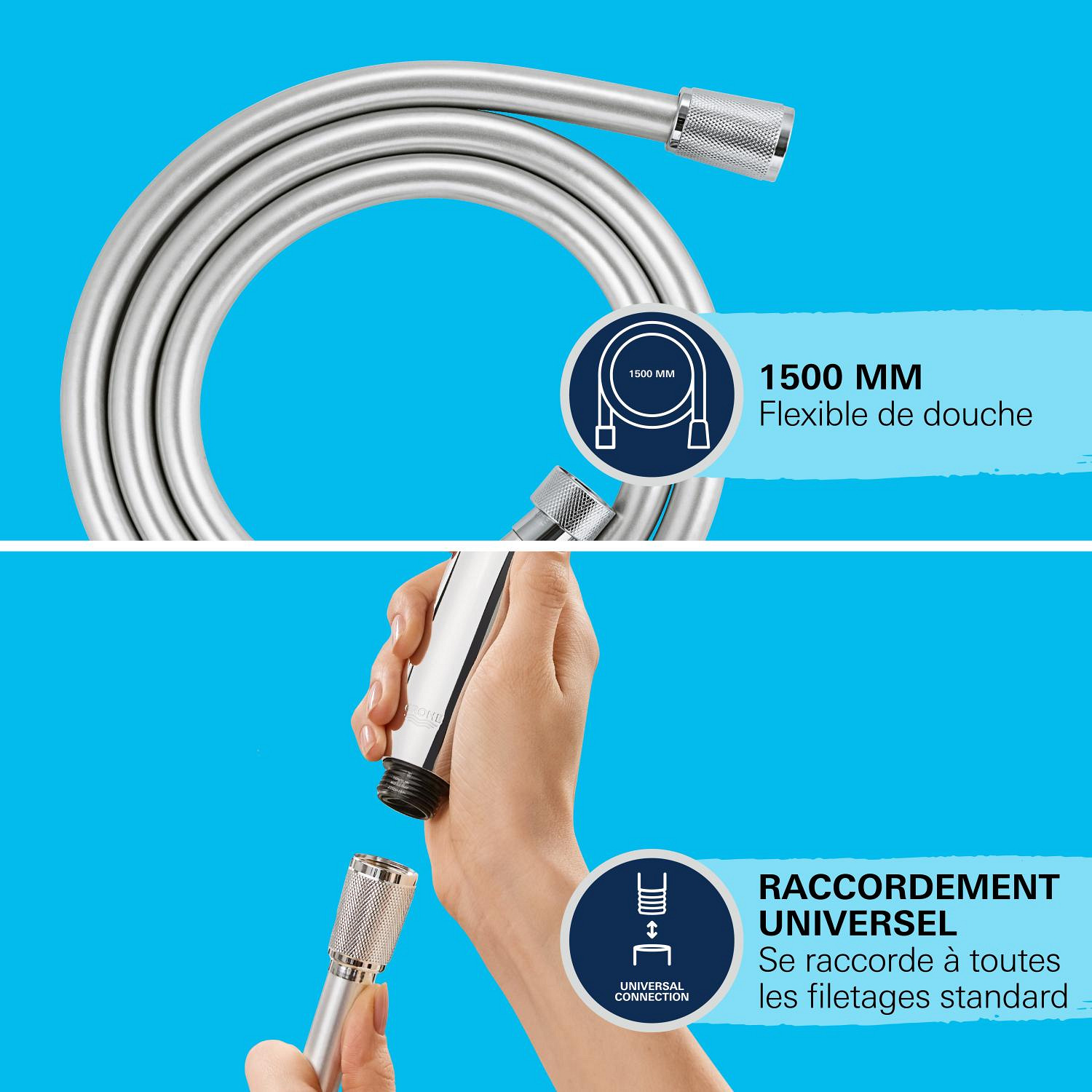Caractéristiques du flexible de douche anti-torsion 150 cm, chrome Grohe VitalioFlex Silver (G27505001) :