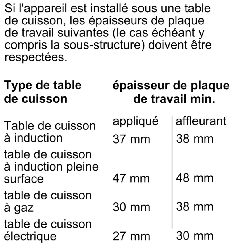 - Hauteur minimum de la niche d'encastrement : 585 mm