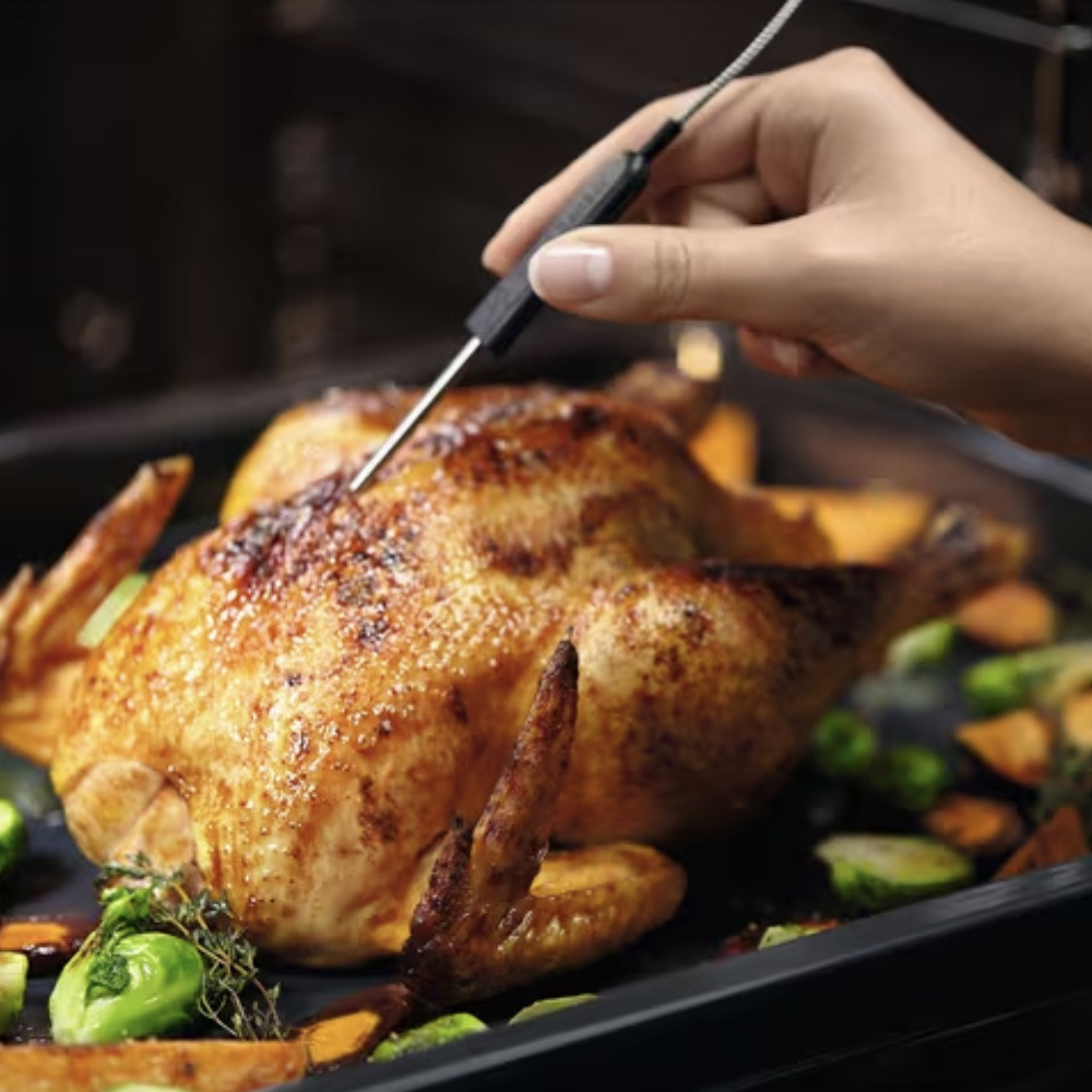 • Sonde de cuisson avec accès en façade et 3 niveaux de résultats prédéfinis (saignant, à point, bien cuit)