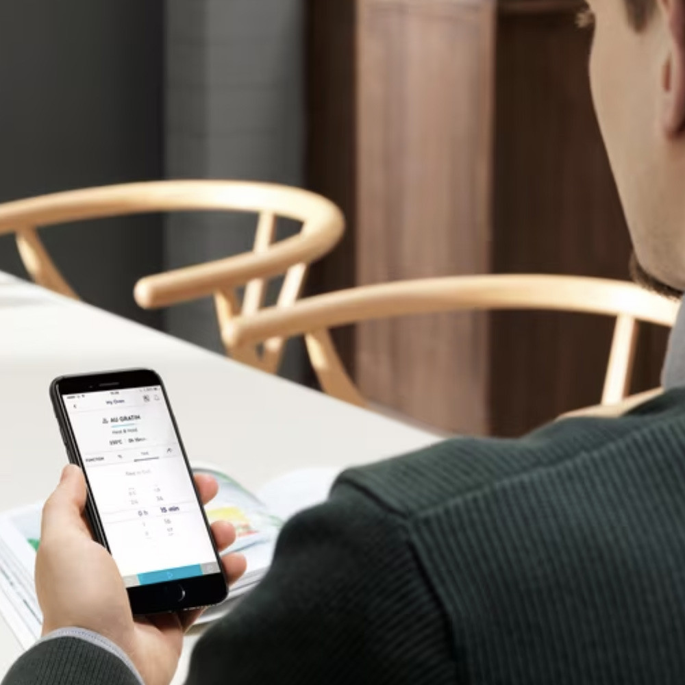 Ce four connecté vous aide à cuisiner à distance. Il est possible de contrôler la cuisson en modifiant les réglages de l'heure et de la température depuis l'extérieur, pour obtenir un résultat parfait même en dehors de la cuisine.