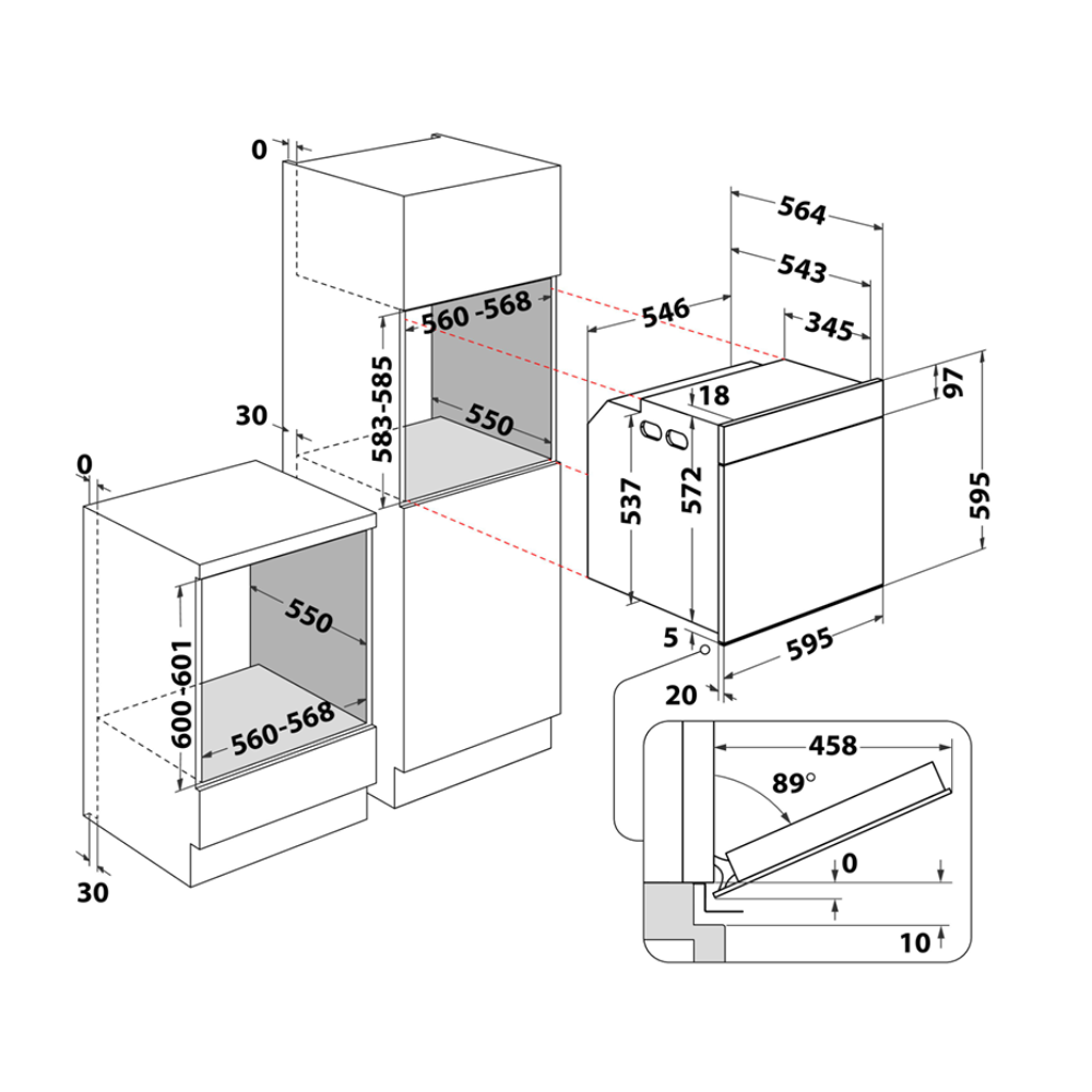 - Sens d'ouverture de la porte : vers le bas