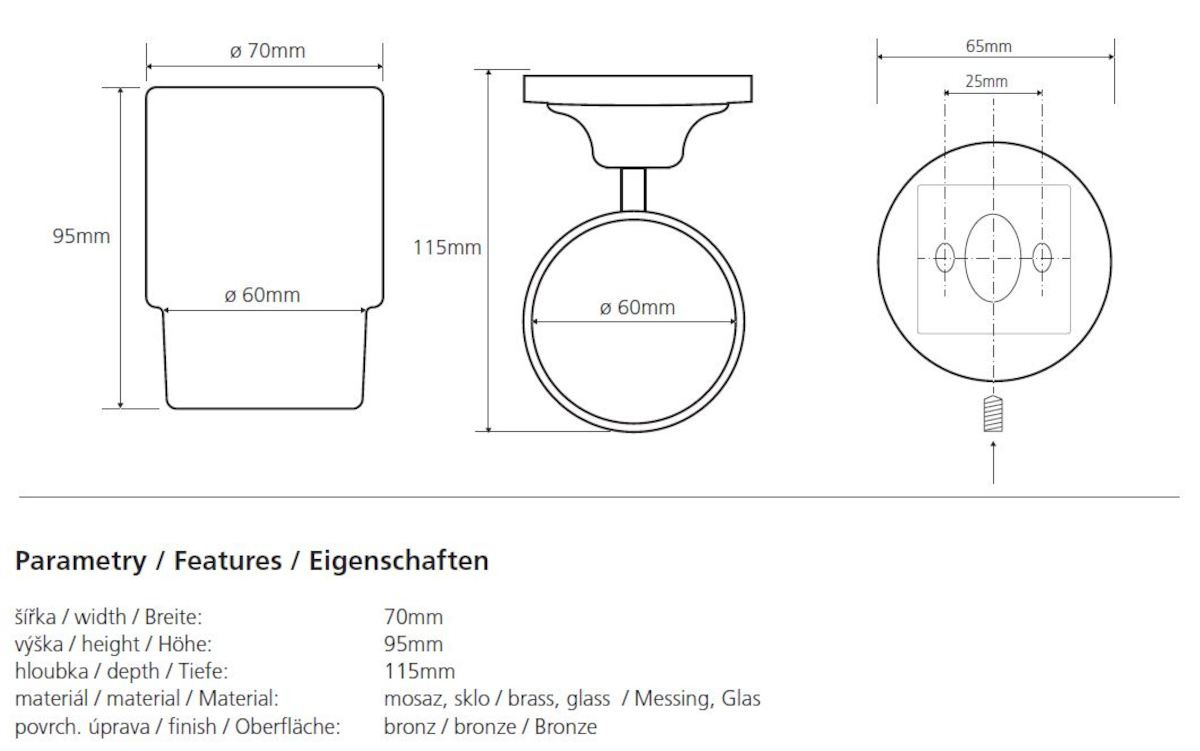Caractéristiques du porte-verre en Laiton, Bronze Bemeta Ricordi (OPTIMARIC27BR) :