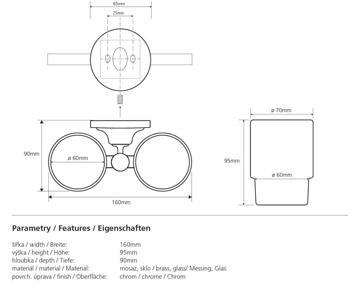 Caractéristiques du double porte-verre en Laiton, Chrome Bemeta Ricordi (OPTIMARIC47CR) :
