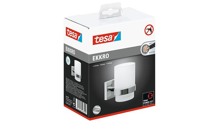 Tesa Ekkro Gobelet en verre dépoli avec support mural en métal chromé inoxydable, pose facile sans perçage (40244-00000-00)