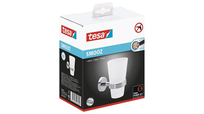 Tesa Smooz Porte-gobelet installation facile sans perçage, métal chromé (40327-00000)