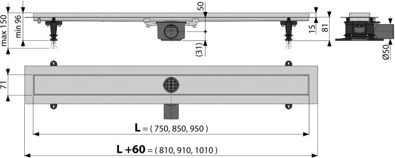 Caniveau de douche avec grille réversible (cpz13-double9-750)