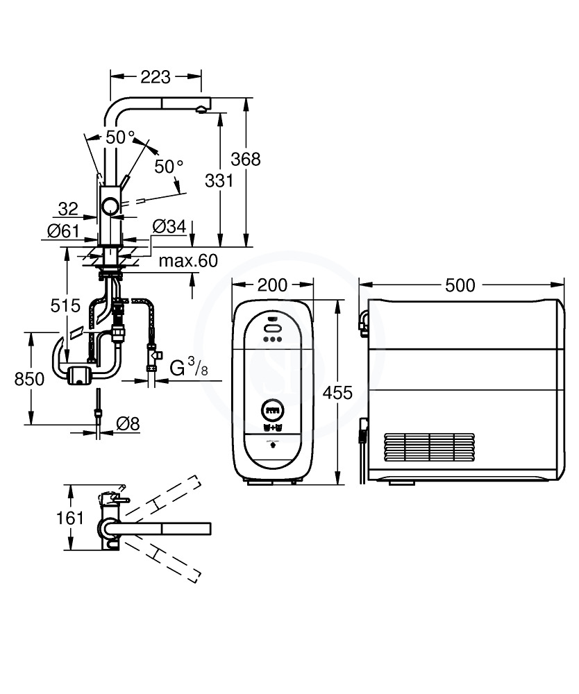 Ajustable pour le filtre GROHE BLUE taille S; le filtre à charbon actif et le filtre magnésium