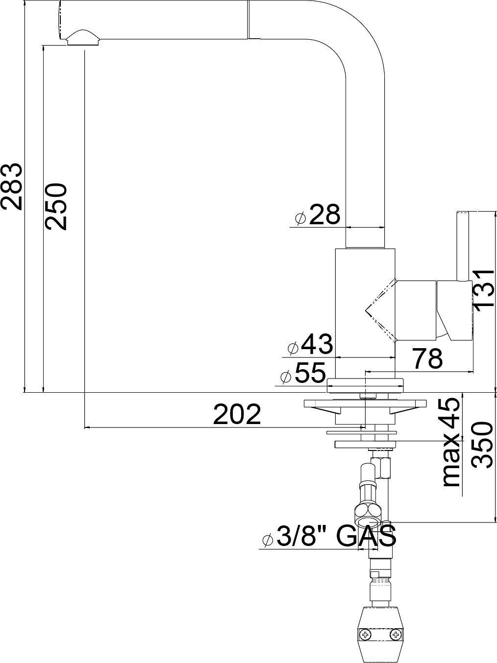 - Évier : 350 × 430 × 180 mm