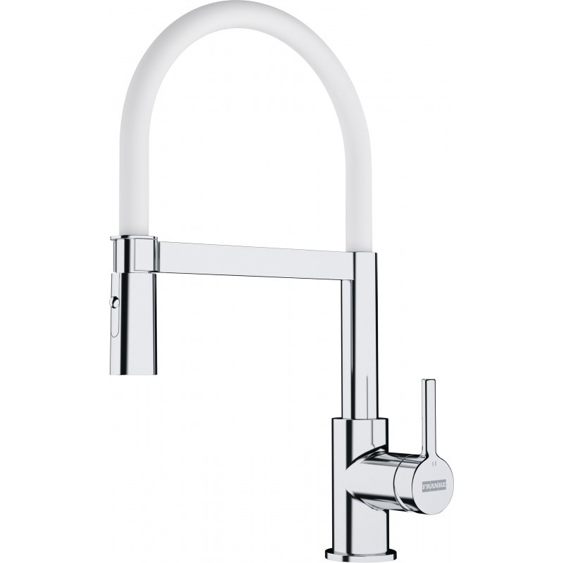 - Franke Lina FC 6087.031 Mitigeur cuisine, 205 x 410 mm, semi-pro avec douchette extractible, Chrome/Blanc (115.0626.088)