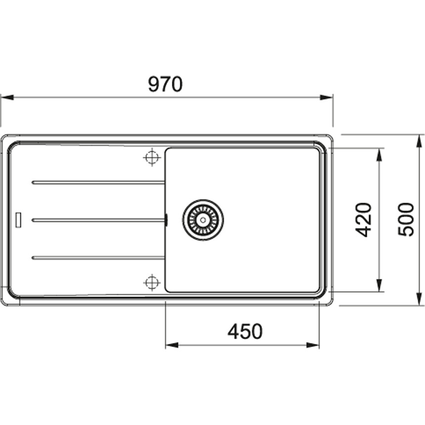 Caractéristiques de l'Evier 97x50cm avec égouttoir réversible, Fragranit +, Onyx, Franke Basis BFG 611-97 (BFG611-97ON) :