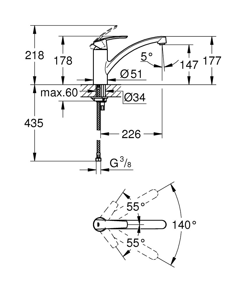 Grohe Start Mitigeur monocommande évier, zone de rotation 140°, supersteel (32441DC1) :