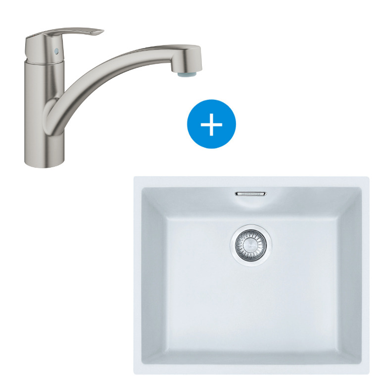 Franke Set Sirius Evier sous plan 52.5x44cm Tectonite®, Blanc Artic + Mitigeur Grohe Monocommande SuperSteel (SID110-50B-DC1)