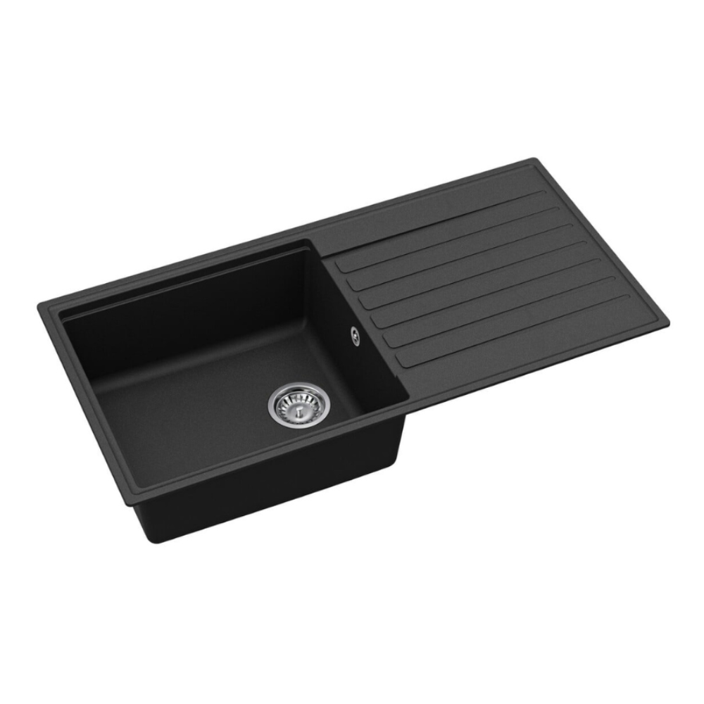 - Swiss Aqua Technologies (SAT) 100x50 cm évier avec égouttoir réversible en Granite, à encastrer, noir (SATSINKGQK103B)