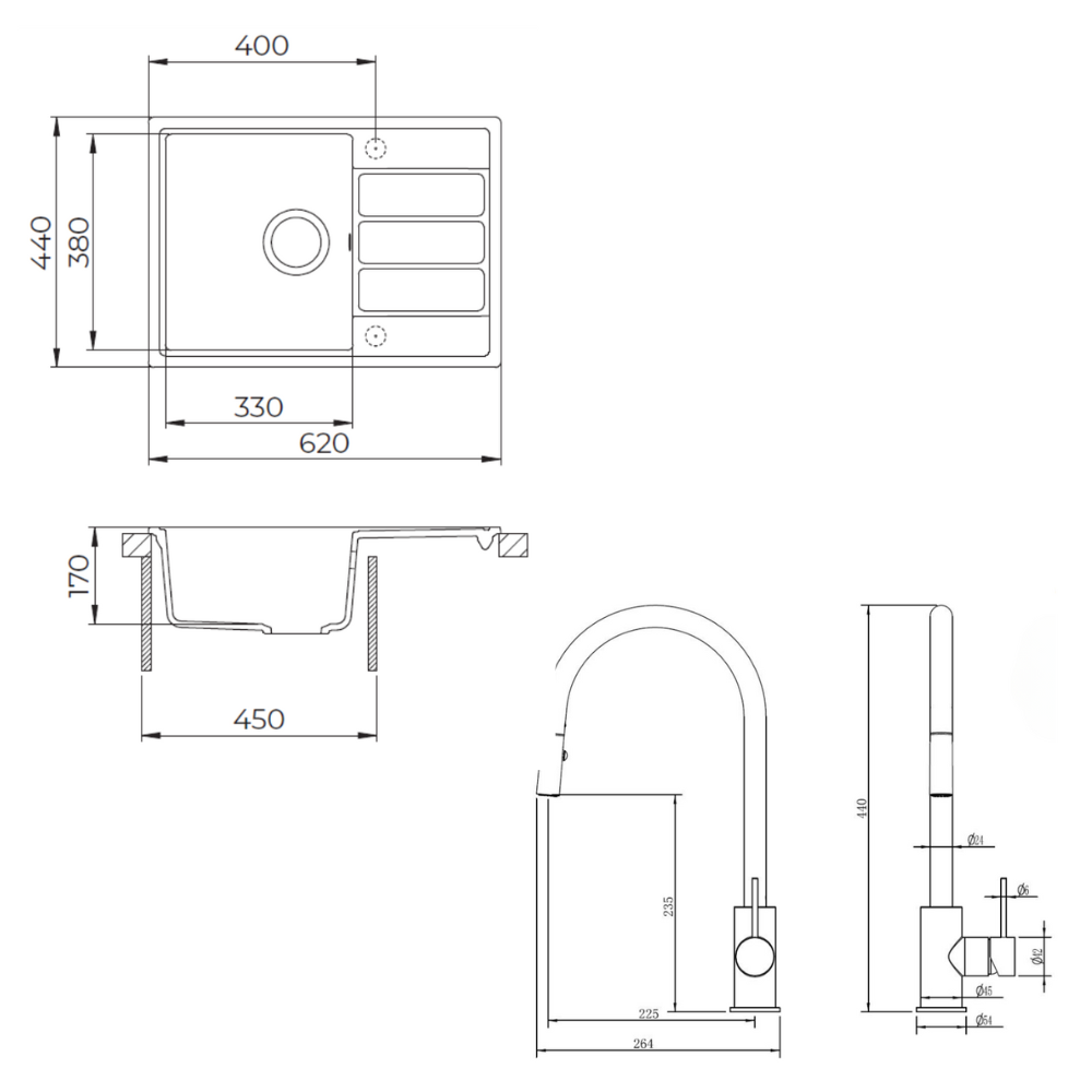 • Dimensions de l'évier : 62x44 cm