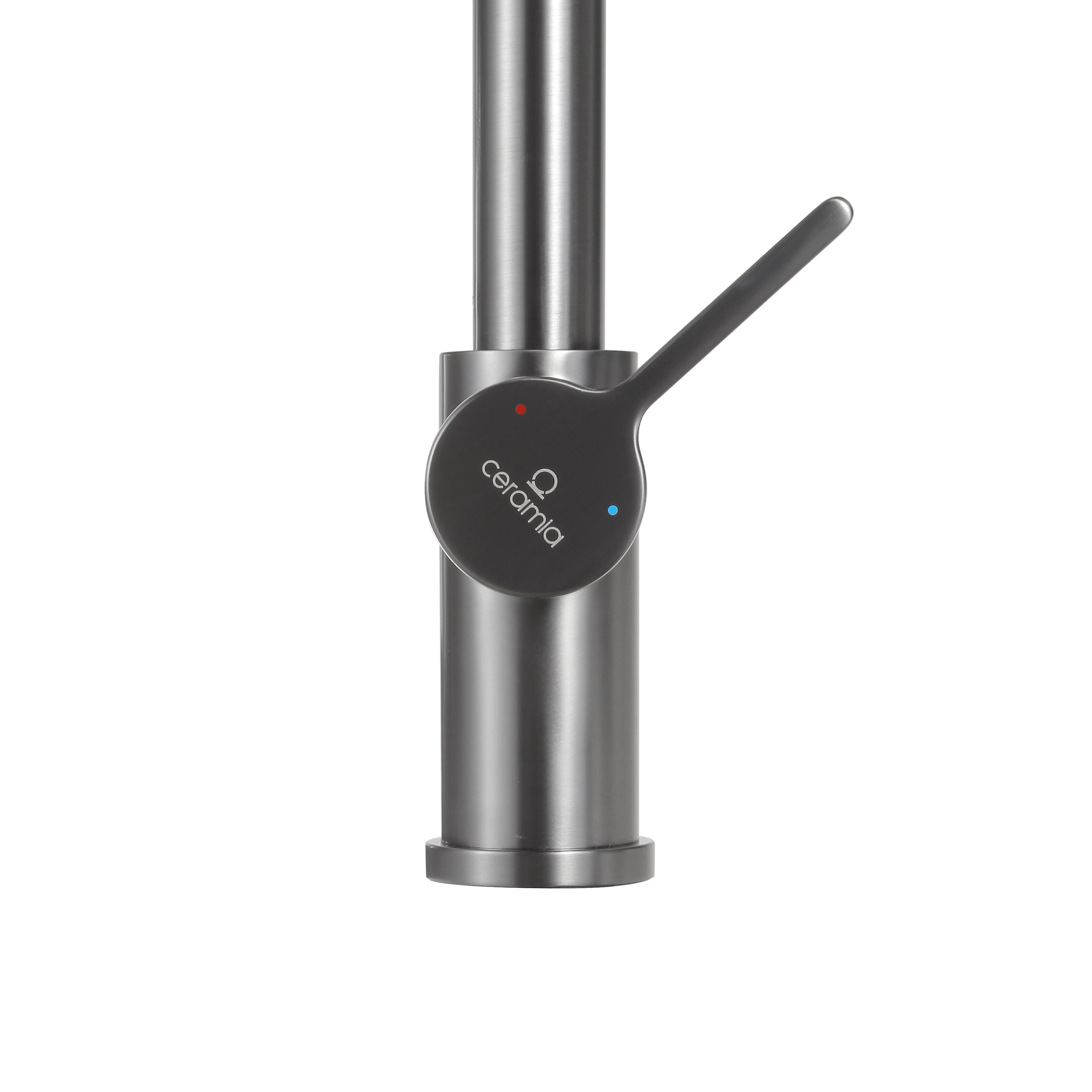 - Ceramia Timeless mitigeur d'évier à levier en acier inoxydable avec douchette extractible, monotrou, gun metal brossé (TMLKF285BGM)