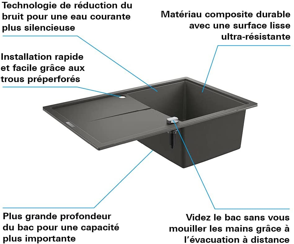 - Grohe K400 Evier en quartz composite avec égouttoir réversible 780x500 mm, Gris granite (31639AT0)