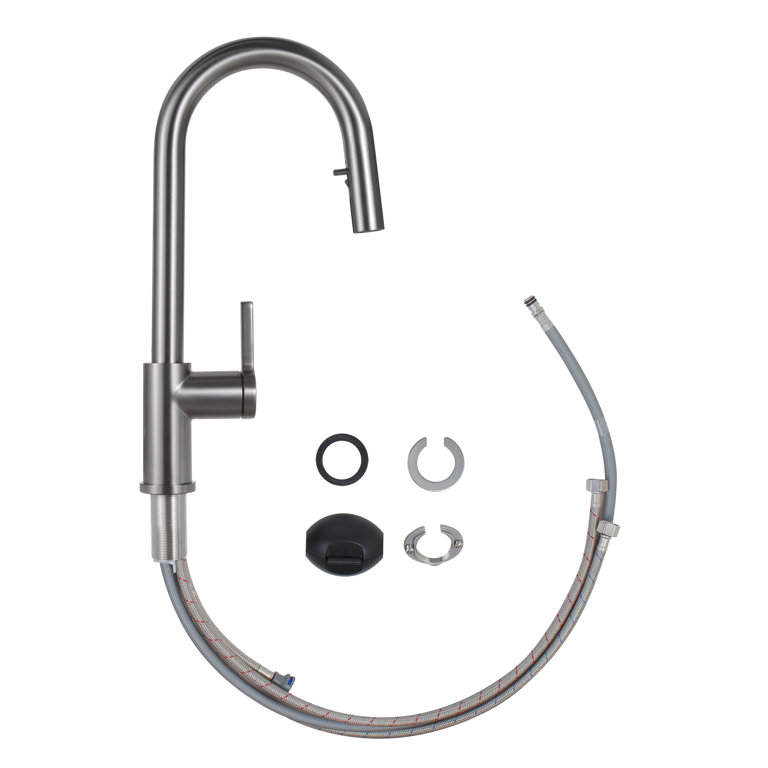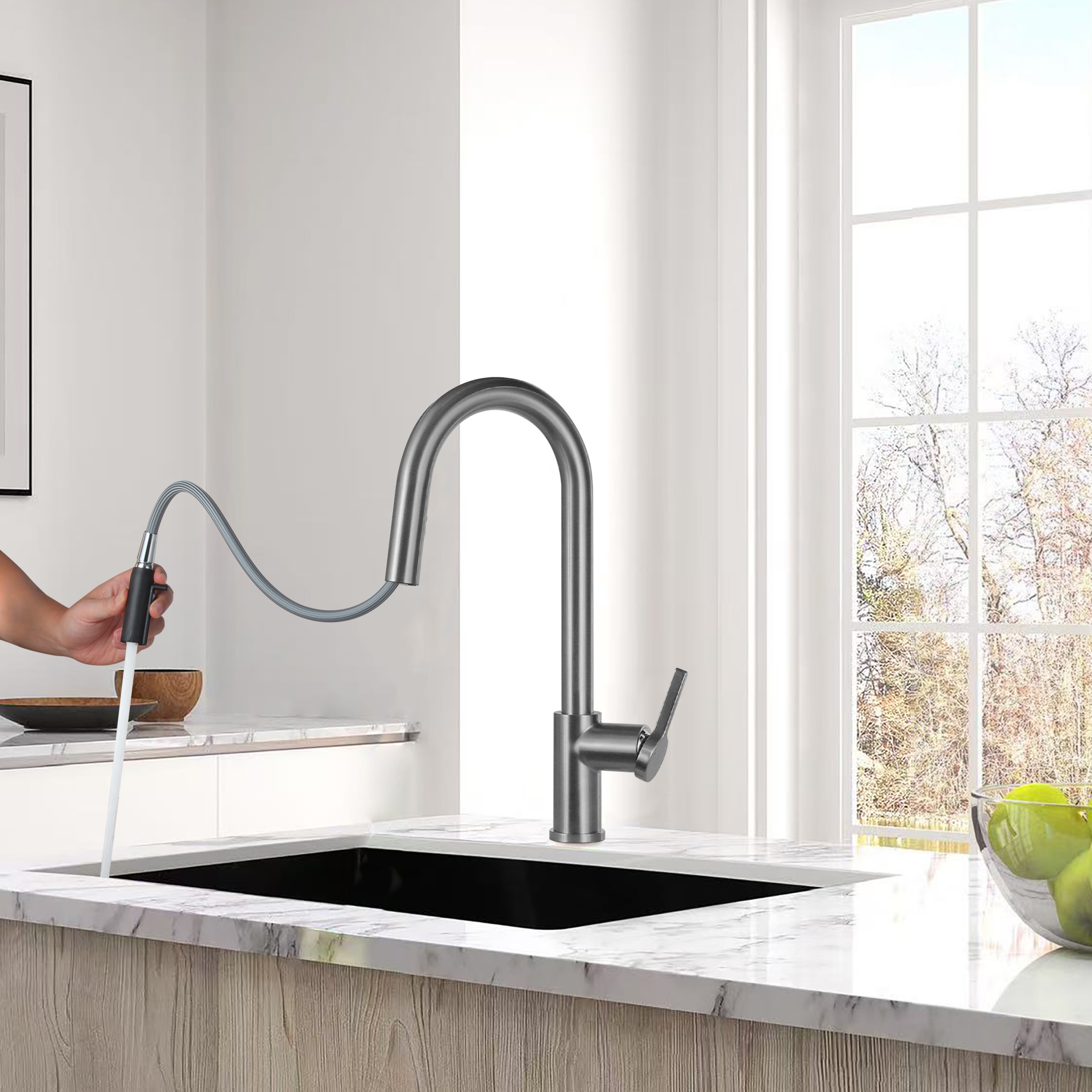 Timeless mitigeur d'évier à levier en acier inoxydable avec douchette extractible, monotrou, gun metal brossé (TMLKF285BGM) :