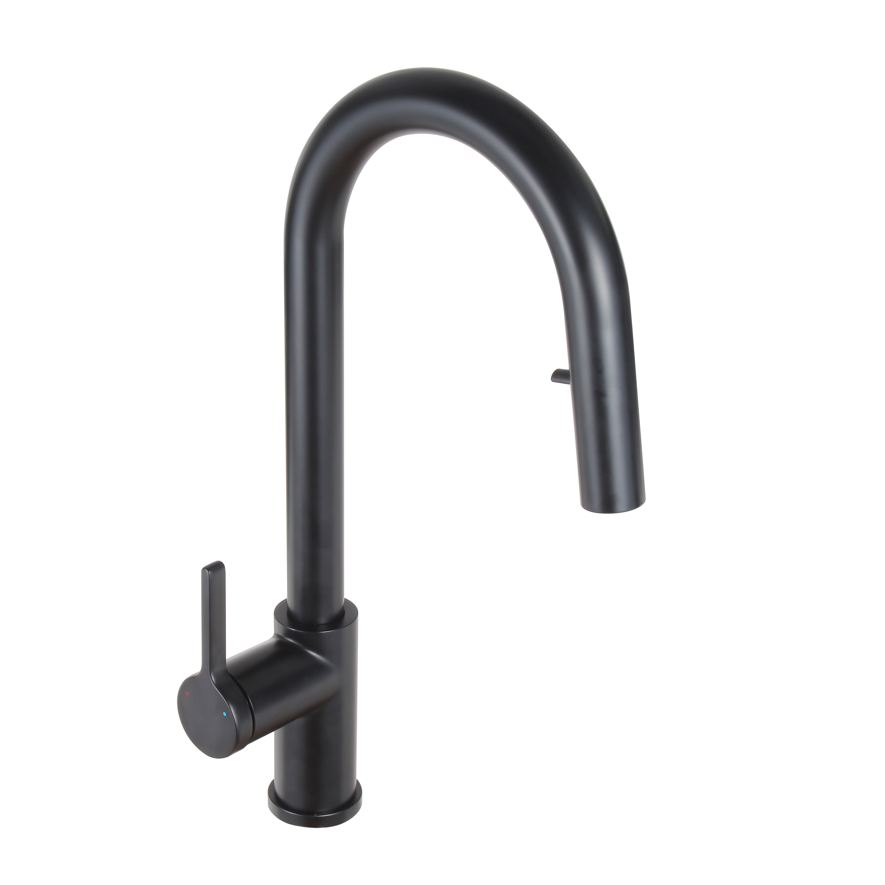 - Ceramia Timeless mitigeur d'évier à levier en acier inoxydable avec douchette extractible, monotrou, noir mat (TMLKF285BM)