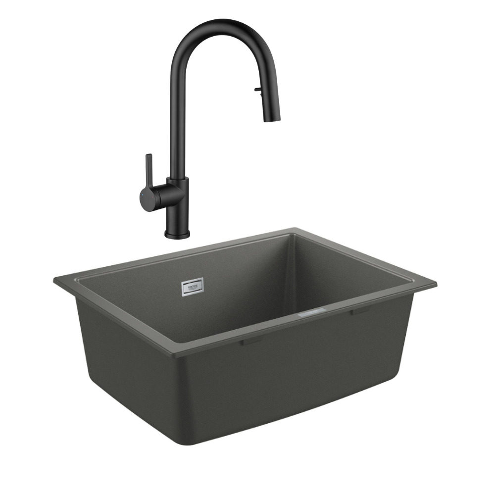 Grohe K700U evier composite + Ceramia Timeless mitigeur (G31655TML2BM-SET)