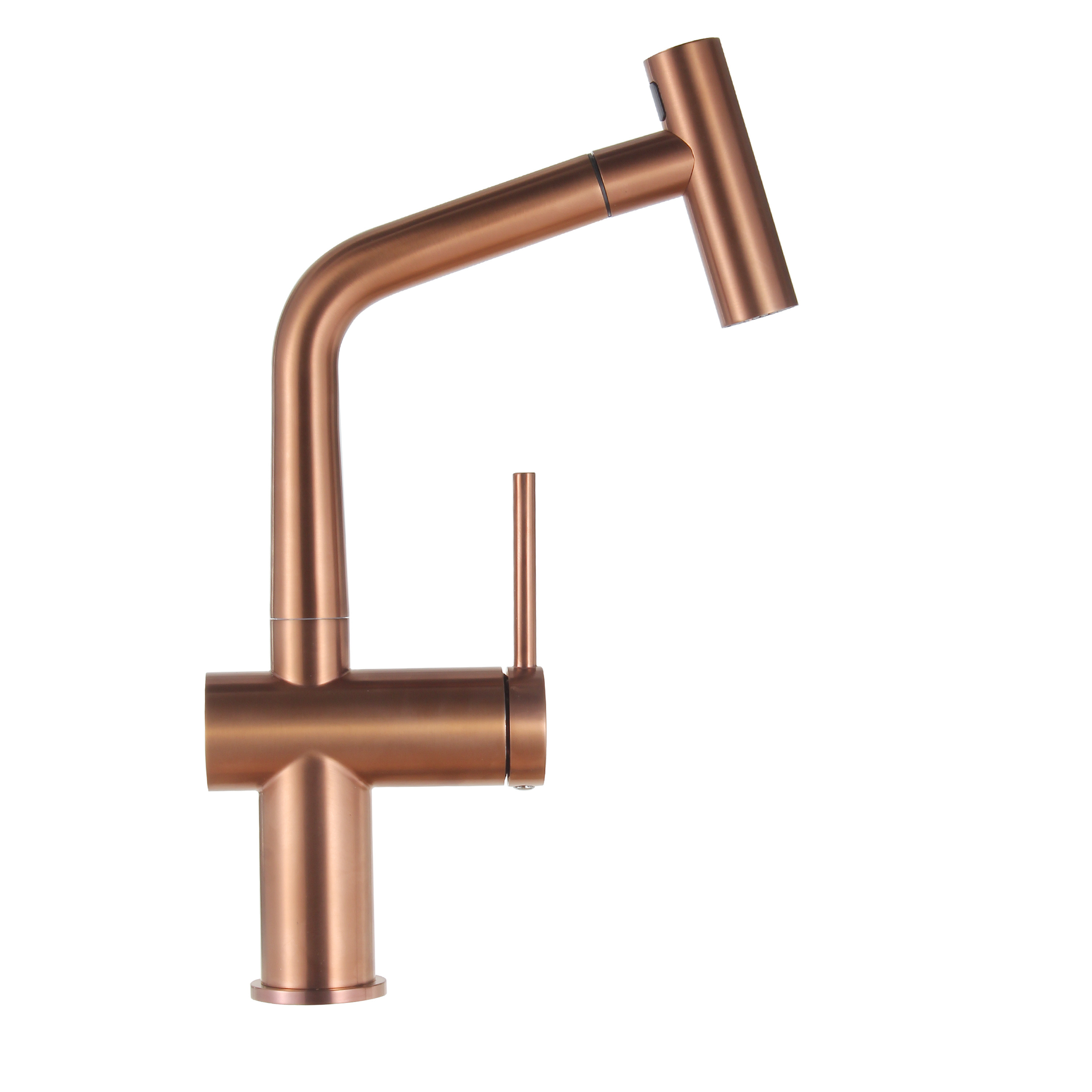 - Ceramia Timeless mitigeur d'évier à levier en acier inoxydable avec douchette extractible, monotrou, or brossé (TMLKF185BG)